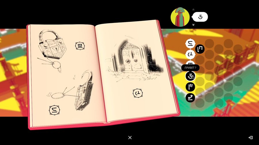 Например, в Chants of Sennaar эту роль выполняет блокнот: когда игрок правильно сопоставляет символ и иллюстрацию, игра даёт чёткий фидбек.