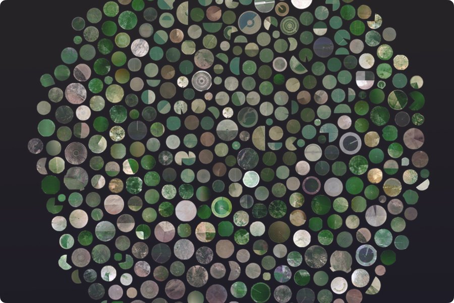 Проект Дженни Одделл Satellite Collections демонстрирует эту логику распределённой внимательности. Художница собирает серии спутниковых снимков объектов, которые обычно остаются незаметными: бассейнов, заводских труб, странных пятен, кораблей и артефактов. Одделл показывает, что внимание — это функция выбора системы наблюдения: спутник фиксирует определённые аспекты мира, оставляя большинство вне поля зрения. Видимое — это результат инфраструктуры.
