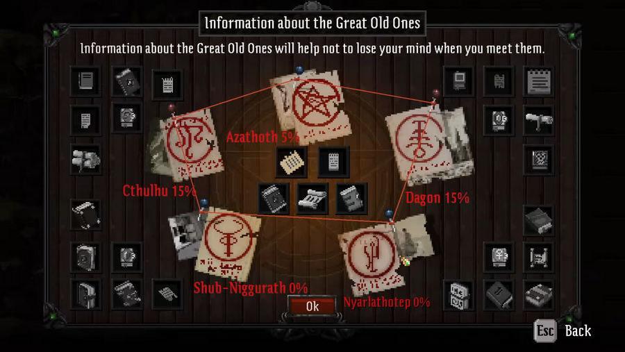 Необычные символы, пиктограммы и нечитаемая чужеродная письменность в лавкрафтовских играх визуально передают идею запретного знания. А поиск запретных знаний, заканчивается катастрофой для ищущих. Лавкрафт видит в них не потенциал для просвещения человечества, а источник смерти всего человеческого вида.