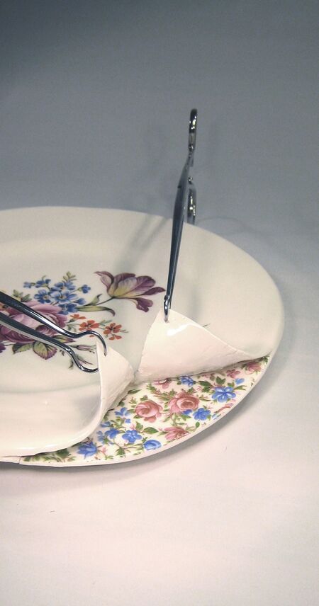 Британская художница Бекки Ридсдел в своих работах исследует тему «хирургии» и препарирования посуды, разрезая фарфоровые тарелки и чашки скальпелем, чтобы раскрыть внутренние слои с новыми узорами, имитируя диссекцию.
