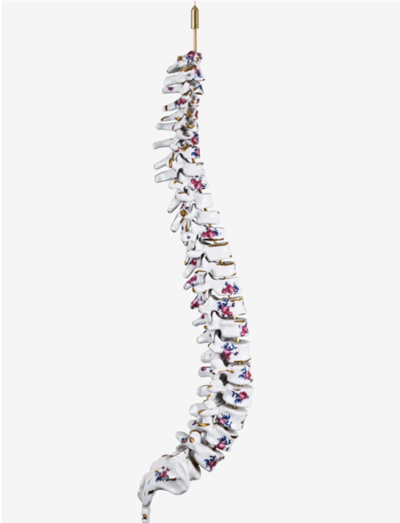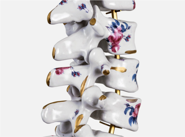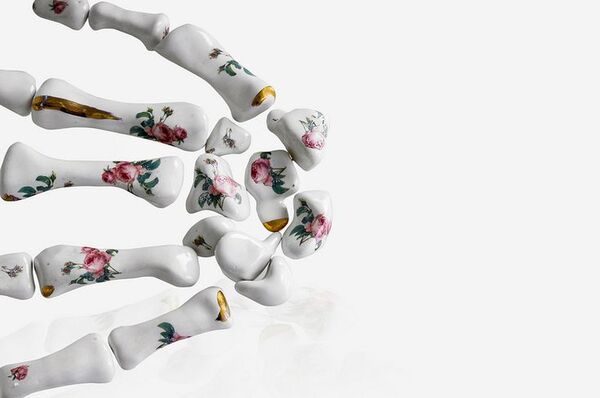 Например, Мария Гарсия Ибаньес активно использует керамику для размышлений о хрупкости человеческого тела и памяти. Её знаменитая серия «Huesos/Piedras/Flores» («Кости/Камни/Цветы», 2011-2014) состоит из анатомически точных керамических скульптур позвоночников и костей, украшенных росписью с флоральными элементами и сусальным золотом. Этот контраст между прочным, обожжённым материалом и хрупкостью, уязвимостью изображённых объектов создаёт мощную метафору человеческого бытия.