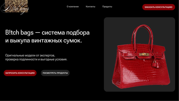 Создание лендинга на основе винтажных сумок Ксении Собчак, как ключевой фигуры в Росиии в