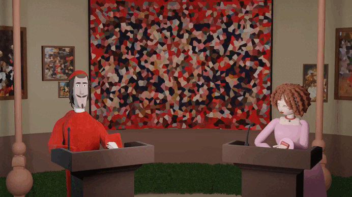 Телевизионная программа, посвященная громким социальным скандалам и интригам, публичным разоблачениям. Стилизация под 17-18-е века, соответствующие костюмы и мебель.
