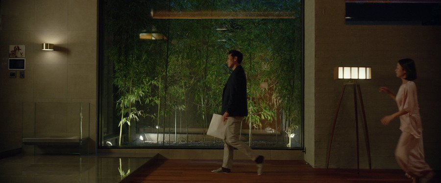 В фильме «Паразит» присутствует сцена с воспоминаниями бывшей домработницы и ее мужа, заточенного в бункере дома. Она траслируется от лица мужа, который рассказывает о том, как они наслаждались архитектурой дома в то время, пока хозяев не было. Сцена кажется дикой и неправдоподобной, т. к. зритель только что познакомился с мужчиной, как с чокнутым бездомным, который вынужден скрываться в грязном никому не известном подвале.