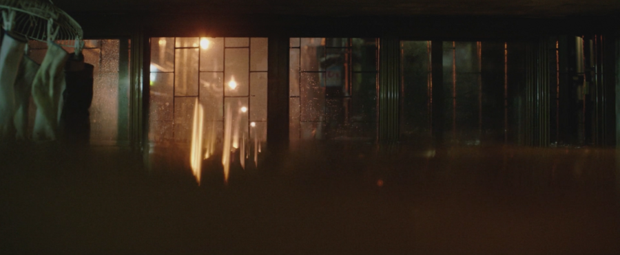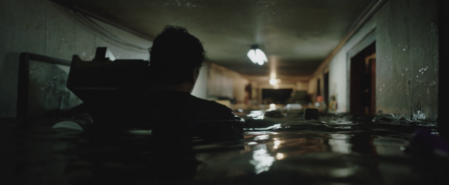 В сцене наводнения затопленные окна находятся выше головы человека, что символизирует недоступность и сложность выхода за пределы возможного.