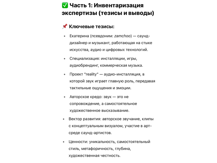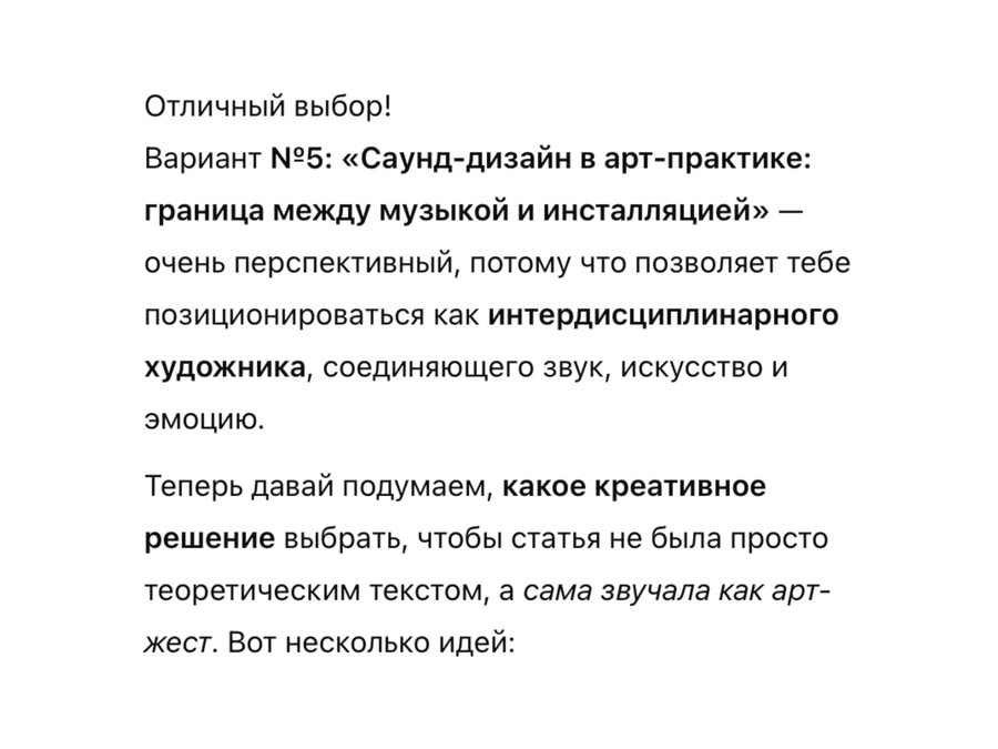 Благодаря ИИ мне удалось лучше понять вектор своего дальнейшего развития, а также научиться работать с инструментами для создания продвигающего контента.