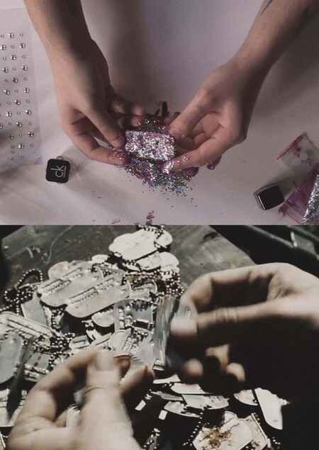 Этот видео-арт исследует образ военного жетона в масс. медиа и общественном пространстве. Военный жетон — это клеймо и бирка, по которой можно распознать труп. Как так вышло, что его образ эстетизируется, продается и выдается за аксессуар? На примере этого объекта можно сделать вывод о влиянии капитализма на милитаризм, как он выдает одно за другое, популяризируя и продавая войну. Тем самым эти понятия подпитывают и рождают друг друга.