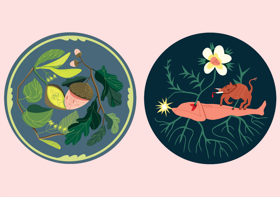2. Как выбор «трагедий, гибели от несчастной любви» для флора-серии на тарелках, обрамлённых «ветками, листьями и лепестками», отражает суть овидиевских превращений?