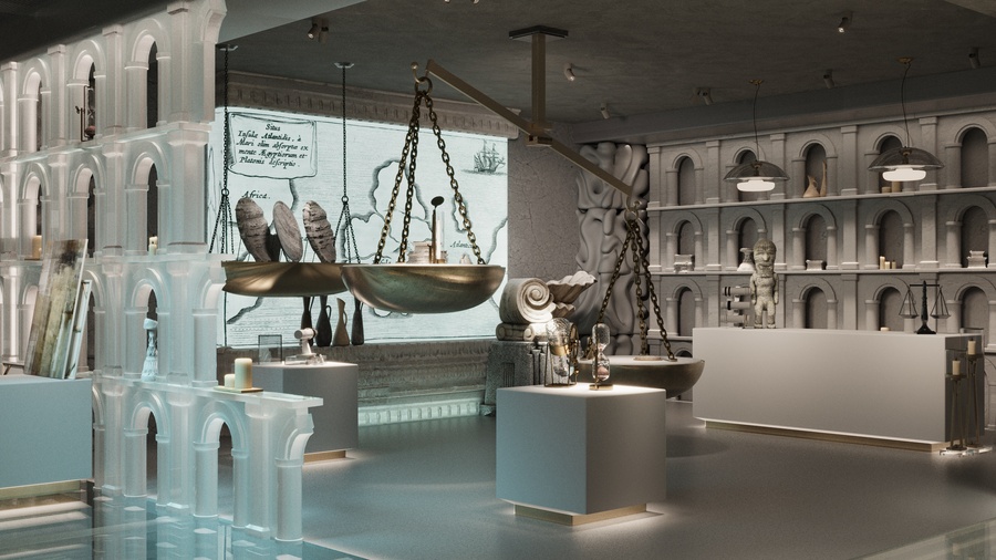Чем выше этаж, тем благополучнее цивилизация. Встречает посетителей Атлантида — затонувшая цивилизация, представленная на первом этаже музея.