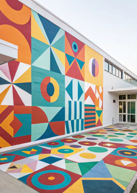 Паттерн является узнаваемой чертой школы, поэтому его можно часто увидеть в пространстве школы. Абстрактный рисунок интересен тем, что несмотря на структурность он создает атмосферу игры, свободы творчества, что оказывает хорошее влияние на студентов школы.