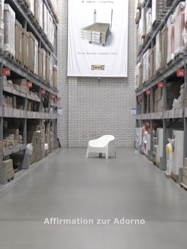 Объекты, подвергающиеся жесту критики массовой культуры, создают свой собственный мир через аффирмации и утверждают критику как основу своей способности к материально-дискурсивным практикам. Читая аффирмации, объекты позволяют себе пересечь границы позитивности, чтобы увидеть «другое и неизвестное», по словам Адорно, — то, что всегда остается за пределами процесса познания-идентификации. Другими словами, объекты представляют себя как вещи, но не как продукты массовой культуры.
