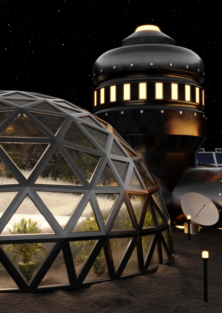 Станция на Луне, где живут и работают ученые-астронавты. В ней есть все, что нужно для изучения и освоения Луны — теплицы, лабораторный блок, солнечные батареи которые питают станцию и оборудования, а также луноход, помогающий в сборе образцов для работы.