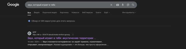 Для формирования семантического ядра я использовал анализ в Perplexity AI. Это позволило определить как базовые запросы (вроде «звук в играх», «цифровое слушание»), так и более нишевые LSI-ключи — например, «Walkman-эффект», «звуковой интерфейс», «тембральная среда». Полученные данные я возвращал в GPT и вместе с ним уточнял их расположение в тексте и плотность вхождений. Кроме того, ИИ адаптировал структуру под формат DTF: я просил его ориентироваться на принятые там пропорции между заголовками и телом текста, избегать избыточной «академичности», но и не скатываться в общее место. Получился внятный, стильный, по делу написанный материал.