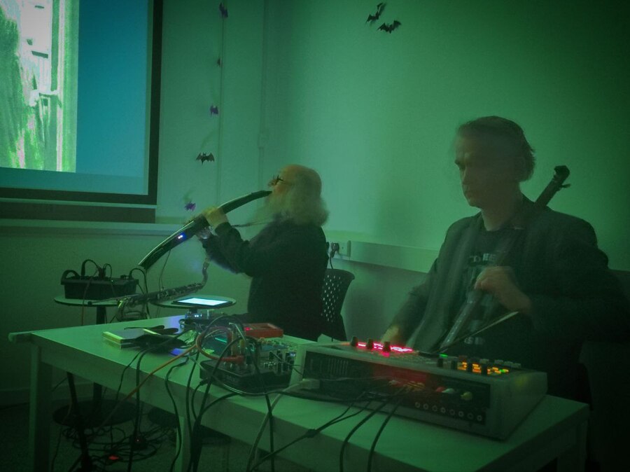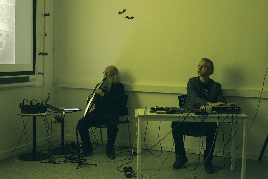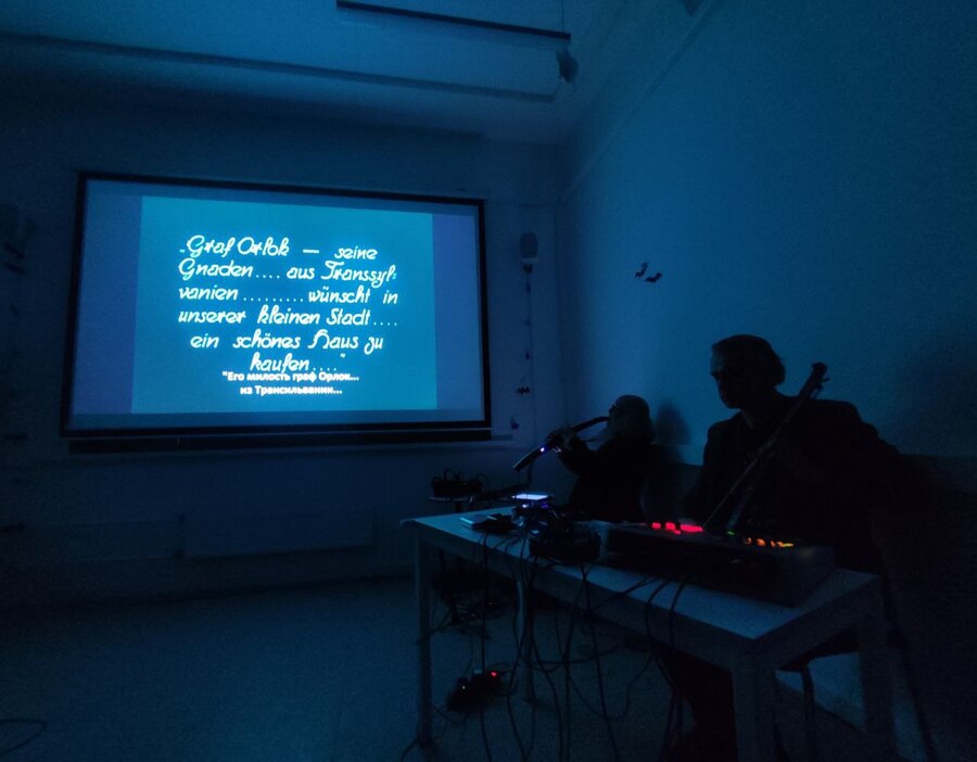 31 октября в 19:00 на площадке CREATIVE HUB состоялся показ фильма «Носферату — симфония ужаса» с живым музыкальным сопровождением Сергея Летова (саксофон, бас-кларнет, электронные духовые) и Евгения Вороновского (скрипка, электроника).