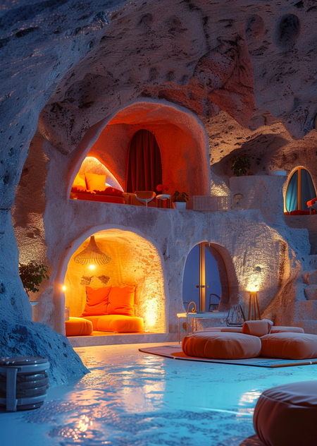 «можно использовать приглушенные натуральные оттенки, напоминающие землю и минералы, чтобы подчеркнуть связь с источником материала — глиной. дополнительно можно добавить яркие акценты, символизирующие креативность и энергию творчества, например, ярко-синий или оранжевый. в качестве приемов дизайна можно использовать органические формы, напоминающие природные элементы, и играть с освещением, создавая атмосферу загадочности и вдохновения, словно керамисты находятся в самом сердце мистической пещеры, где каждый уголок скрывает сокровище творчества»