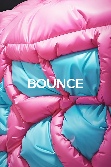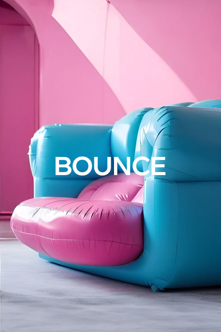 BOUNCE — бренд надувного декора для дома. Проект представляет собой редизайн брендинга моего старого проекта BLOB с помощью нейросети.