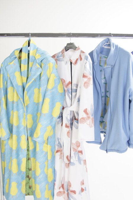 3.2. Nomta — собственный бренд, в основе философии которого лежит ощущение ностальгии. Темой капсульной коллекции становится ностальгия о детстве. Основой принтов становятся мои личные детские рисунки. Конструктивная особенность рукавов бомбера заключена в их форме — в них как будто бы включен силуэт детских стульев, часто служивших каркасом для построения «детских домов» из одеял и подушек.