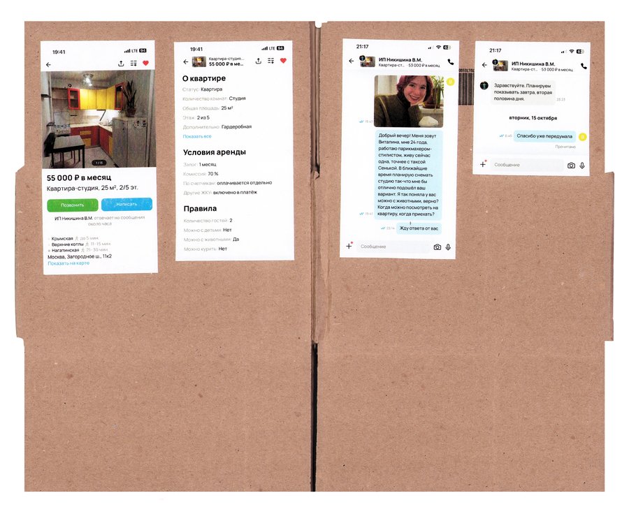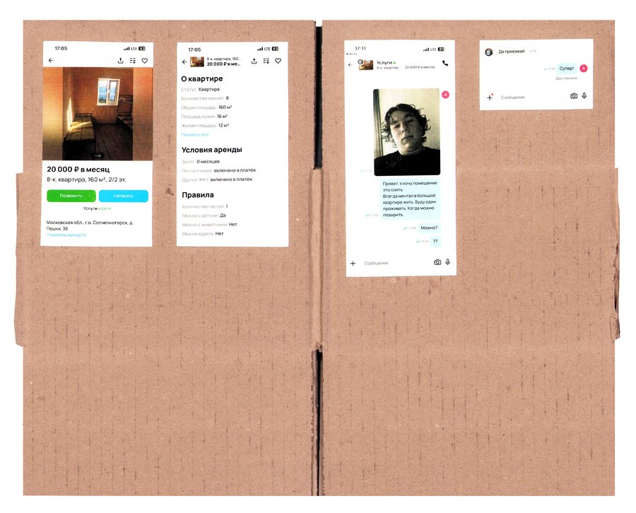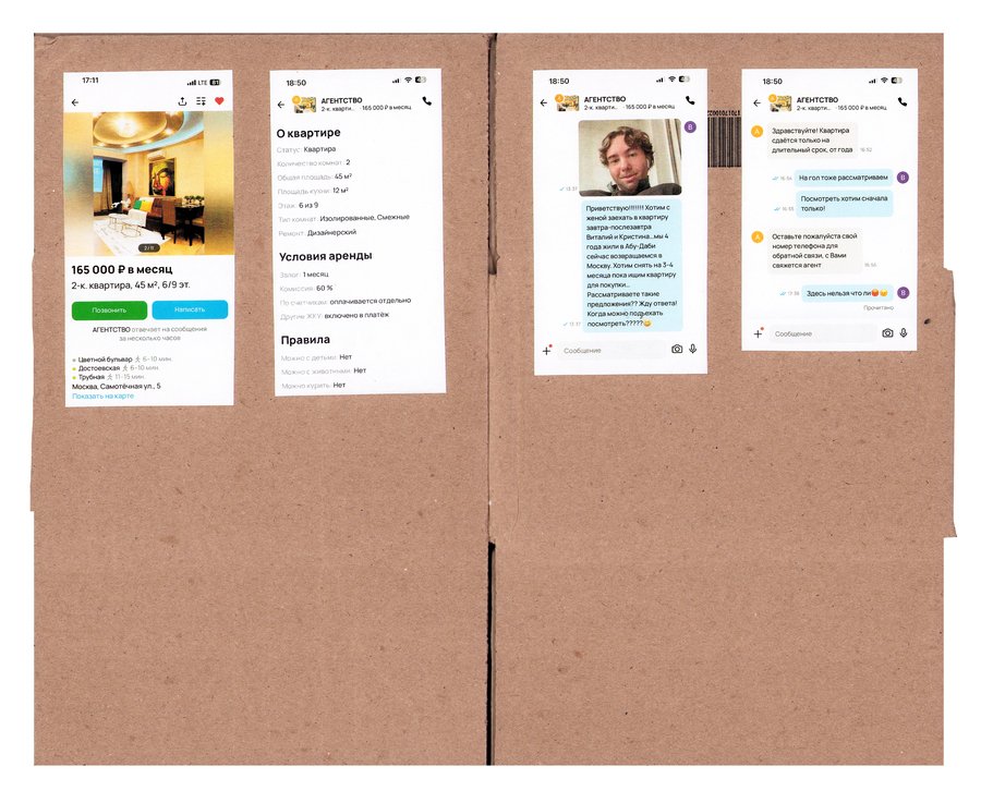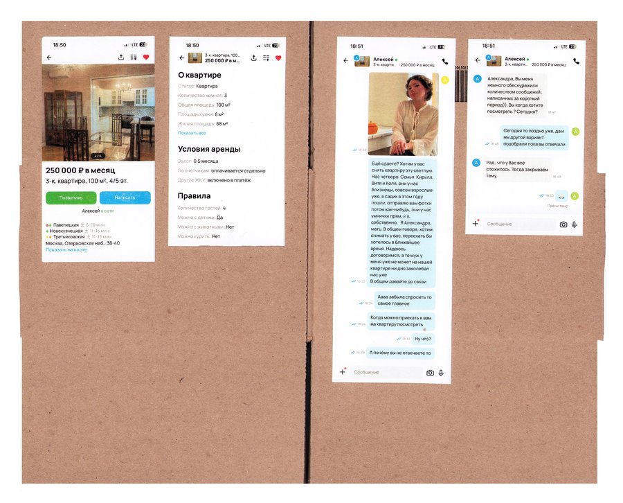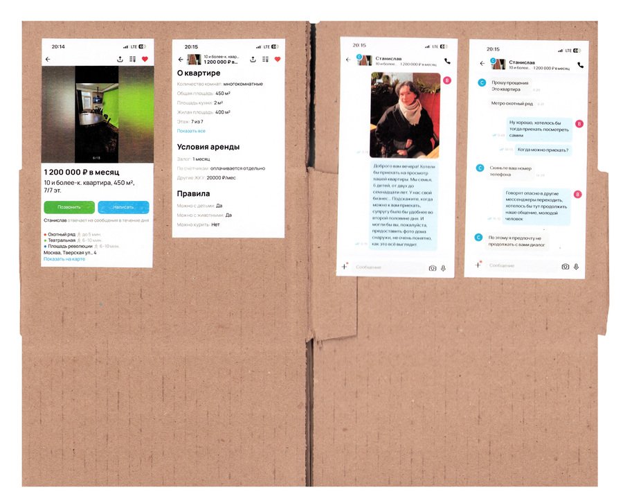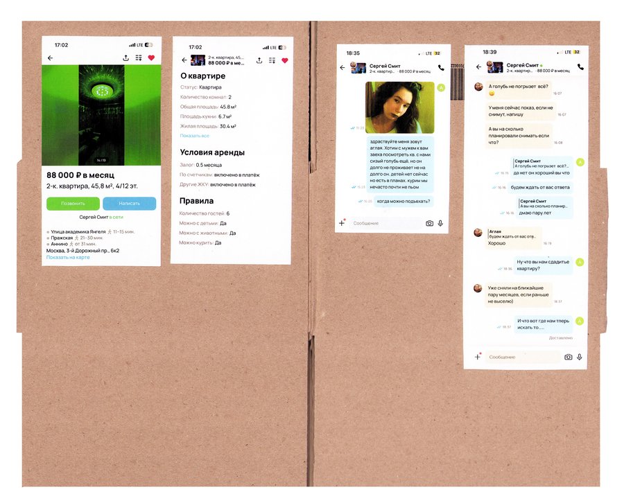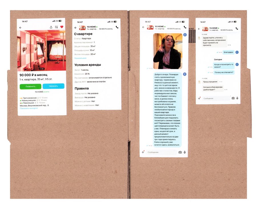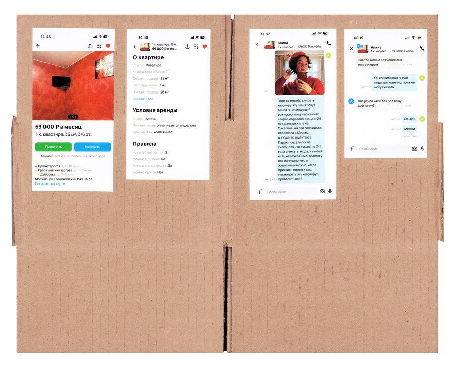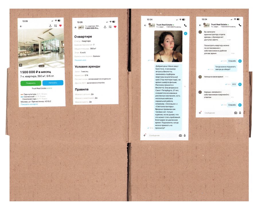 Принцип работы: - нахожу необычную квартиру на авито - придумываю образ человека, который мог бы ее снять - перевоплощаюсь в этого человека и делаю фото - пишу арендодателю, рассказываю о себе и прошу провести для меня просмотр квартиры - проверяю, подхожу ли я им, пригласят ли меня на просмотр
