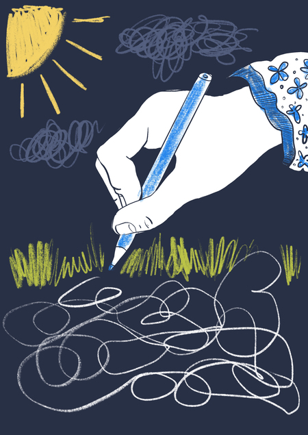 Так, в главе, посвящённой детству и семье, рисунок наивен, а цвета — насыщенные.
