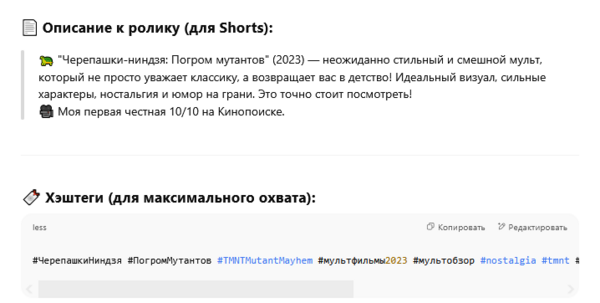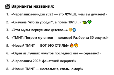 Видео я опубликовала в tiktok. Как и в статье, мне было важно сделать видео живым и человечным. Основой видео послужил мой уже существующий текстовый обзор мультика «Черепашки-ниндзя: Погром мутантов» в тг канале