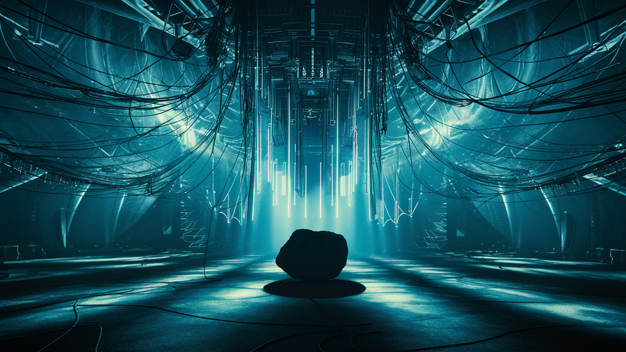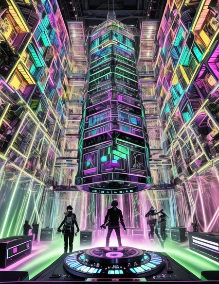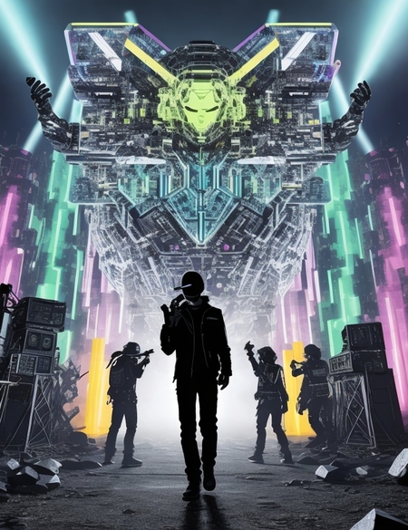 Оригинальный проект представляет из себя айдентику для андерграунд Hardcore (название этого жанра, кстати, цензура большинства нейросетей-генераторов картинок не пропускает) диджея VS-mute. За основу стилистики в первоначальном проекте был взят силуэт камня висмута, в этом проекте я много экспериментировала с его формой и контурами. В переосмыслении начать я решила с него же, но дать уже нейросетям нарисовать все необходимые контуры и паттерны, а также обратить больше внимание на природу техно-хардкора и ее визуальное отражение.