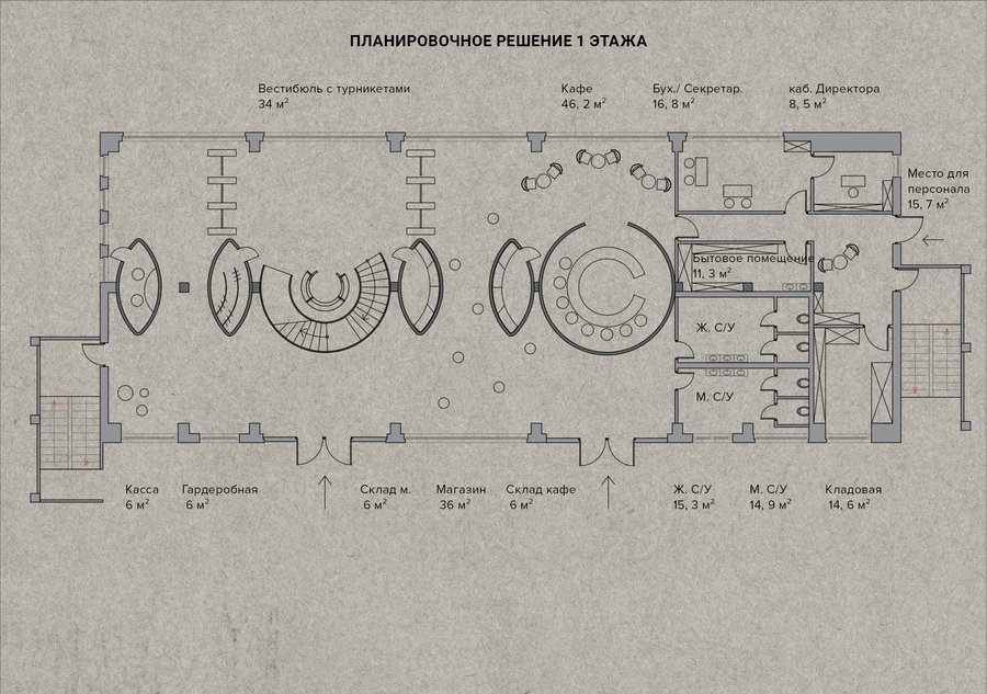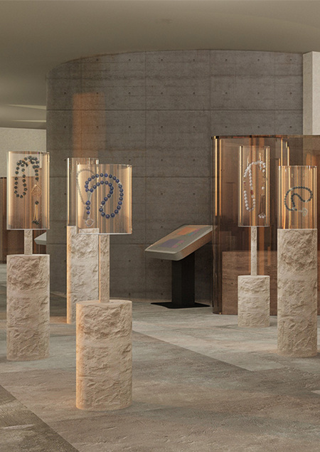 Товары расположены внутри стеклянных цилиндров. Такой формат помогает сделать на них большой акцент, а также для хорошей видимости