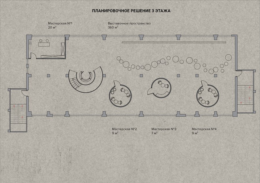 По середине барной стойки расположен стеклянный столб, в котором светятся сферы. Сферы — это бусины, которые нанизаны на шнур/ ленту.