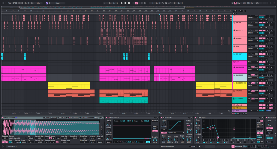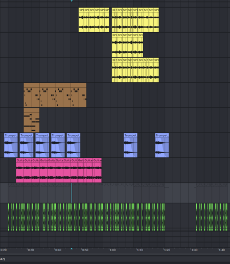 Внутри самих музыкальных дорожек методы сэмплирования смешиваются с многоголосными MIDI партиями, создавая иллюзию «глубины» композиции. Детализацию музыке придают короткие сэмплы вокализов под пространственными обработками, так же как и бэки на голосе.