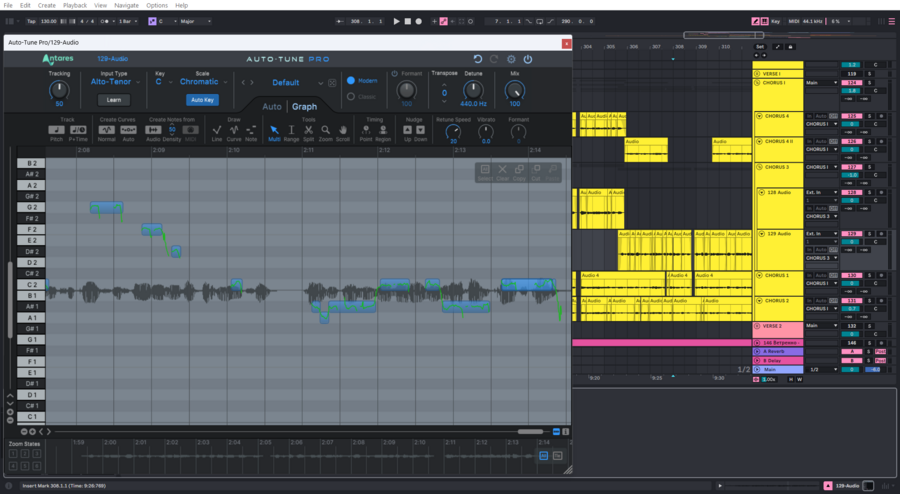 Дополнительная обработка голоса производится через плагин Antares Autotune Pro, благодаря которому достигается чистота многоголосного звучания. На голос накладывают стандартные обработки в виде компрессора, сатуратора и эквалайзеров.