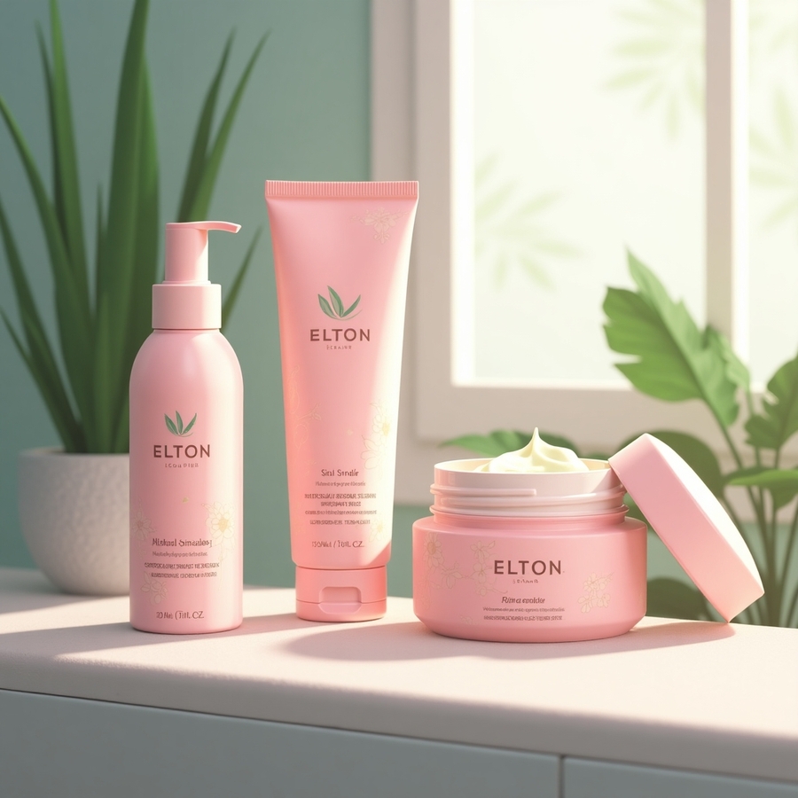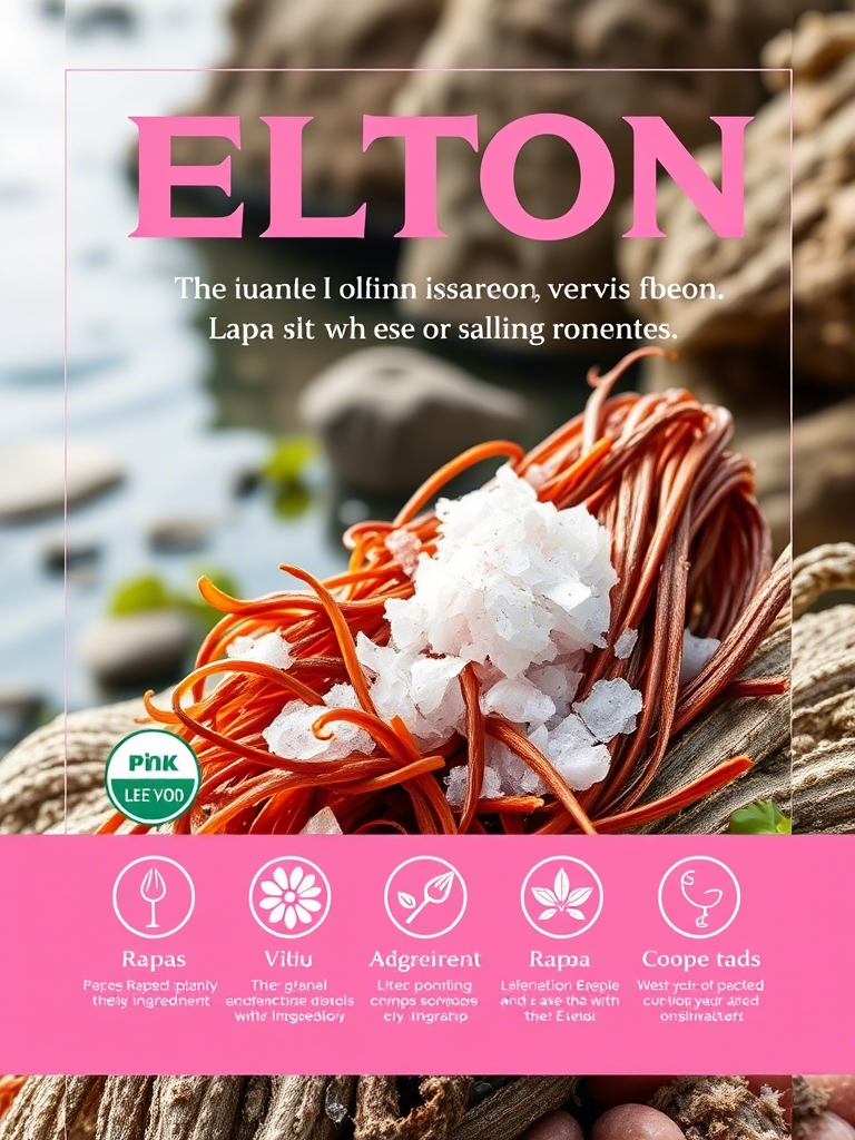 Key Design Requirements: The primary color of the brand is pink, which should be prominently featured in the design. Unique Selling Point (USP): Highlight the exclusive use of ingredients from Lake Elton to differentiate our brand and create a sense of exclusivity. Use clear, modern typography that communicates the natural ingredients and benefits of each product. Ensure that the labeling is easy to read and understand. Incorporate visual elements that reflect the natural environment of Lake Elton, such as subtle patterns or illustrations of rapa, seaweed, or salt formations. Design packaging for a variety of products, including creams, serums, and cleansers, ensuring consistency across the range while allowing for product differentiation.
