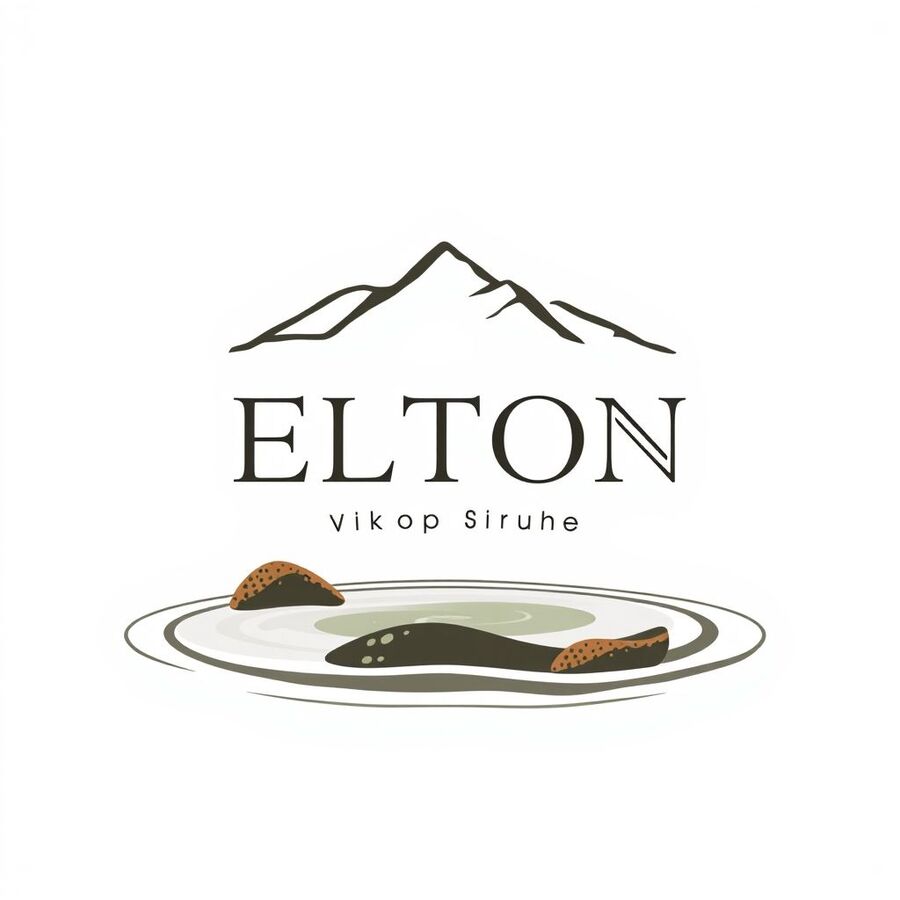 create a vector logo with white background for the shop named 'ELTON' that makes care cosmetics using the nature ingredients (rapa, mud and seaweed) from the pink elton lake