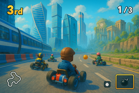 Для победы все средства хороши, а поэтому вы можете подбирать разложенные по трассам предметы и использовать их для того, чтобы мешать противникам.