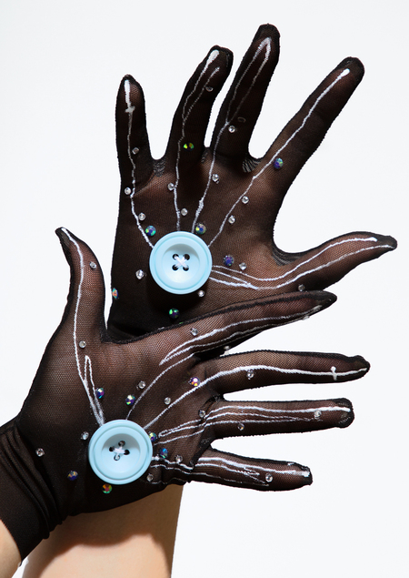 Также в комплект к платью идут перчатки, с буквами-иголками и пуговицами, которые Бельдам хотела пришить Коралине вместо глаз.