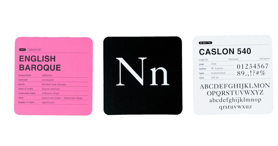 A — Z CALENDAR — обучающий календарь в виде карточек по истории типографики / аксессуар на карабине