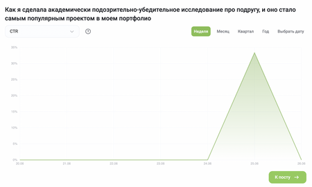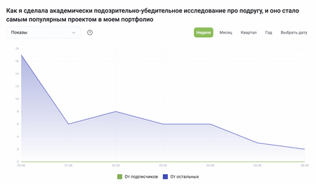 В этом проекте я проанализировала результаты продвижения моего персонального портфолио через шуточные посты в социальных сетях о своей коллеге созданные с помощью ИИ.