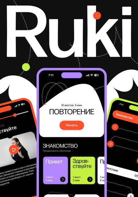 RUKI — приложение для изучения языка жестов, которое поможет улучшить коммуникацию между людьми с нарушениями слуха и речи и окружающими, благодаря изучению РЖЯ* в игровой форме.