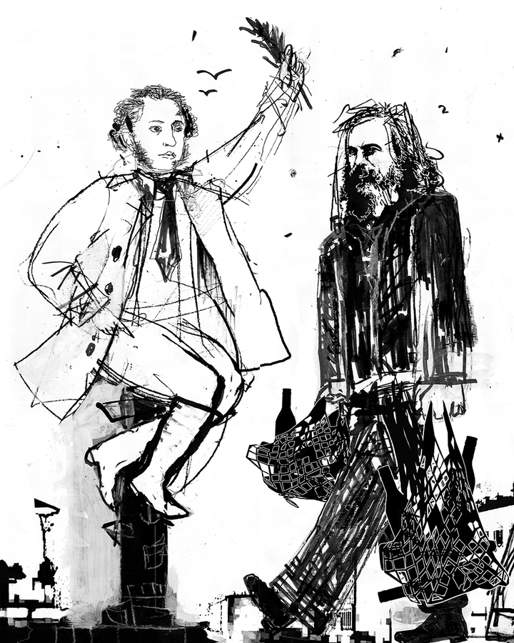 Для проекта были взяты яркие персонажи из истории Санкт-Петербурга и помещены в локацию современного Невского проспекта. Было решено не отказываться от свободного рисования, а наоборот — возвести его в ультиматум. В поисках характера героев не обошлось и без юмора: Менделеев угрюмо «топает» сдавать бутылки, Николай 2 дерется с Распутиным, а Петр 1 гордо… едет на электросамокате.