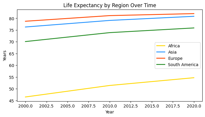 region_year = df.groupby (['Region', 'Year'])['LifeExpectancy'].mean ().reset_index ()