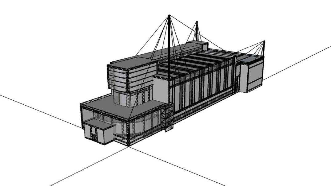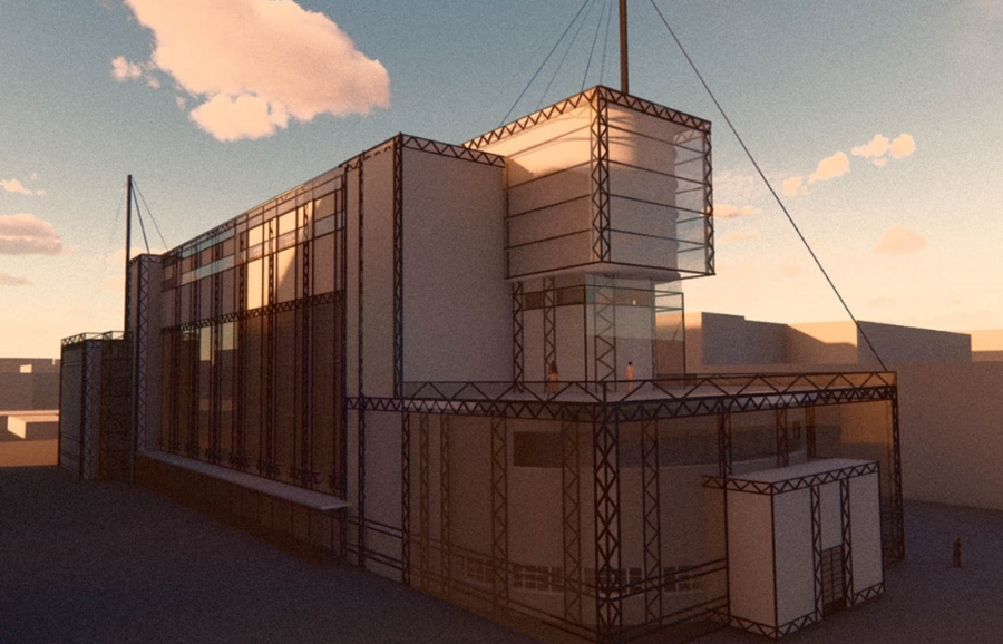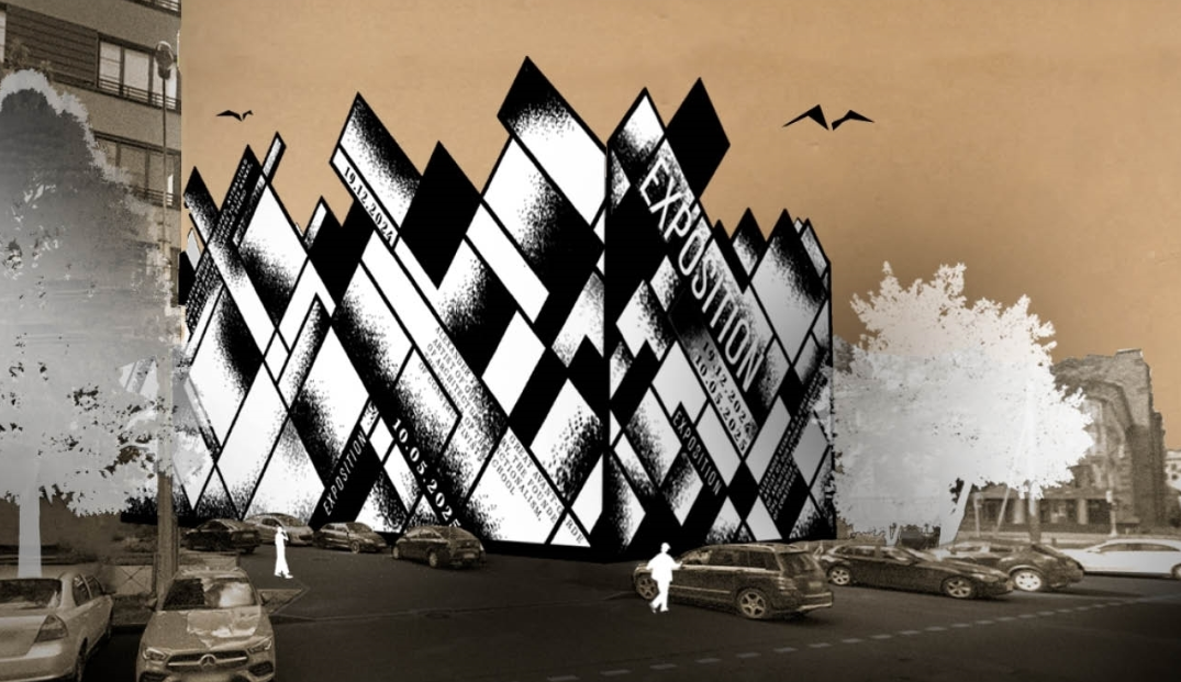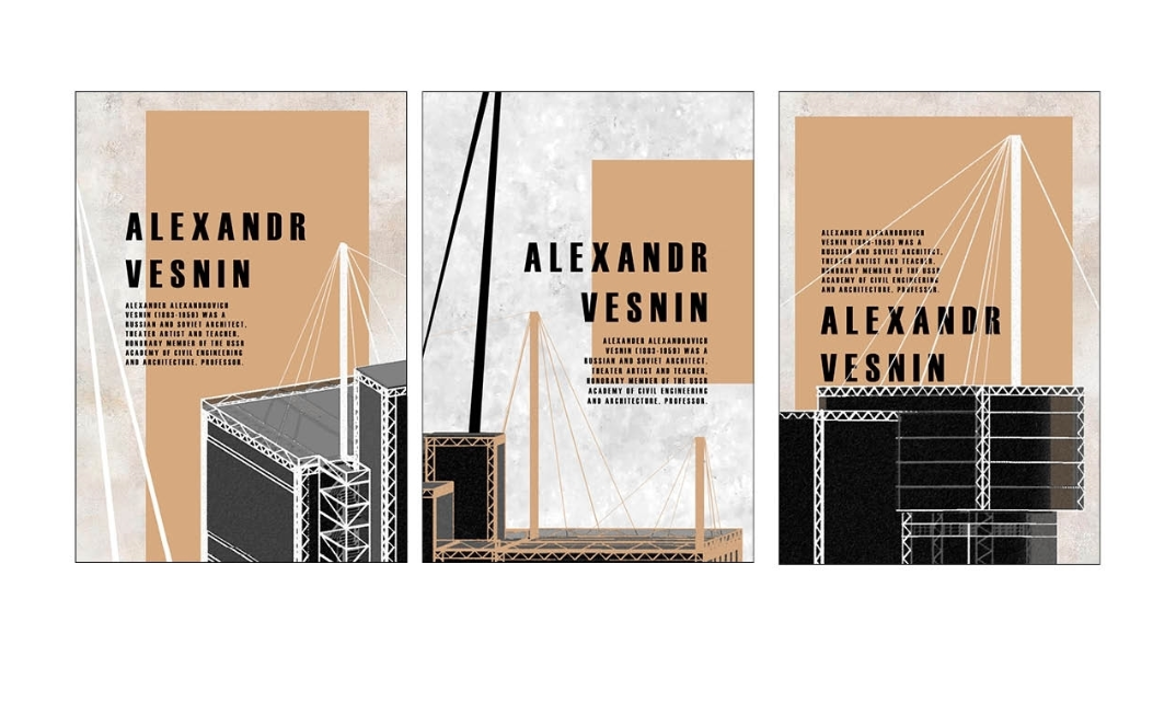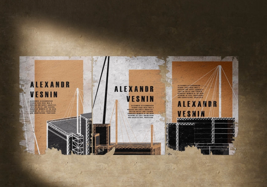 Произведения А. А. Веснина излучают ощущение порядка и структуры, что и отображает графический фасад. В разработке архитектурного фасада за основу были взяты работы А. А. Веснина, где он экспериментировал с пространственными решениями, динамичными композициями и новыми формами.