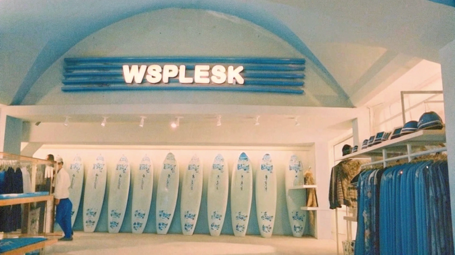 ПРОМПТ: Create a clean minimalist modernist-style logo for a surfing brand for blind people WSPLESK. The logo should contain a logomark made of simple forms and a logotype. The logo should be displayed on a solid white background. You’re only allowed to use white, black and an accent color of your choosing.