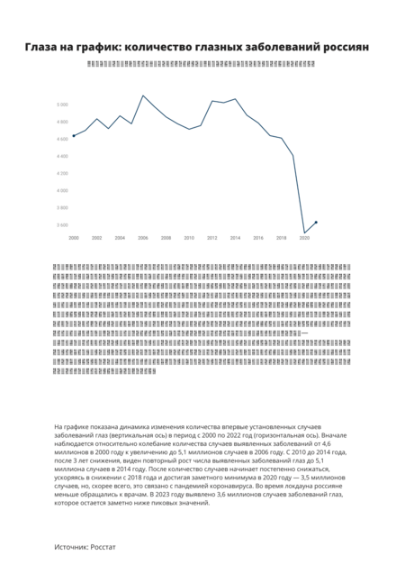 Тогда мне пришла идея — подготовить плакат про распространённость глазных заболеваний среди россиян. И совместить контент для зрячих (распечатанный текст с графиком) и незрячих (полное описание графика на Брайле).