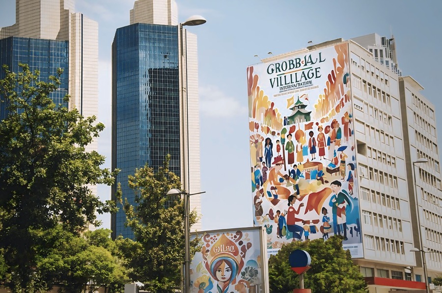 Цель этого проекта — создание фирменного стиля для выставки Global Village, с помощью искусственного интеллекта.