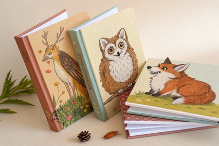 Prompt: Generate an image of a cozy and collaborative children’s book publishing office where a corgi, an owl, a fox, and a bunny are part of the team. The office is filled with natural light, comfortable seating areas, and colorful bookshelves. The corgi is lounging on a sofa, the owl is perched on a tall bookshelf, the fox is reviewing manuscripts at a desk, and the bunny is hopping around, occasionally offering pencils. The style should be warm, friendly, and inviting, showcasing the harmonious interaction between the animals and human team members.
