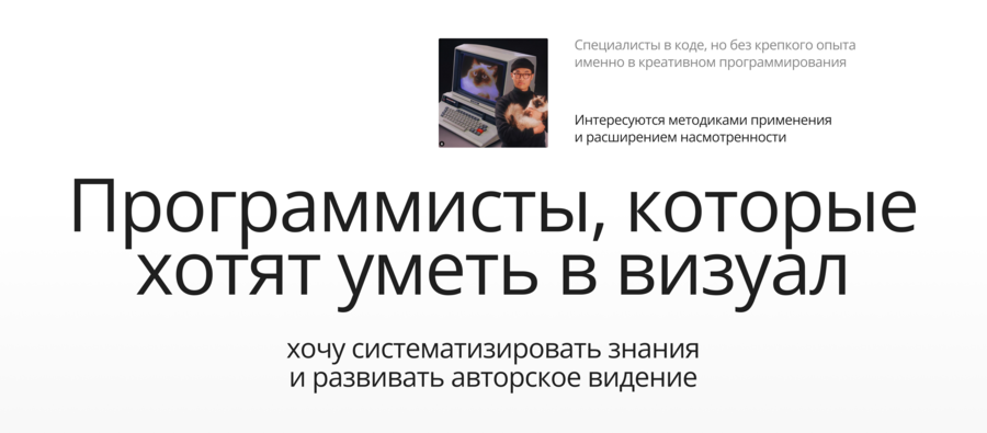 Проект представляет собой образовательную платформу, посвящённую креативному программированию как художественной и проектной практике, объединяющую учебный текст, интерактивные примеры и галерею работ в единую систему обучения.