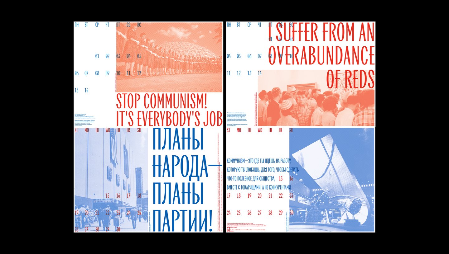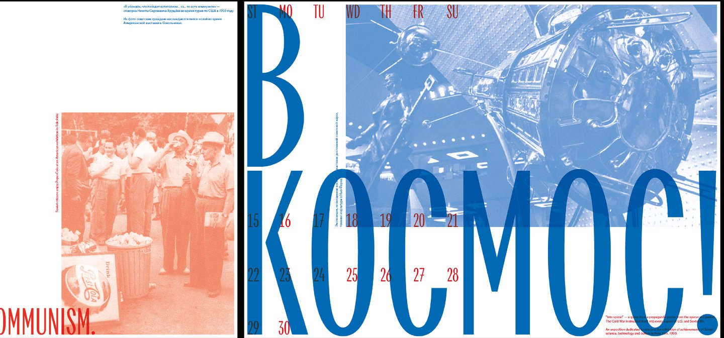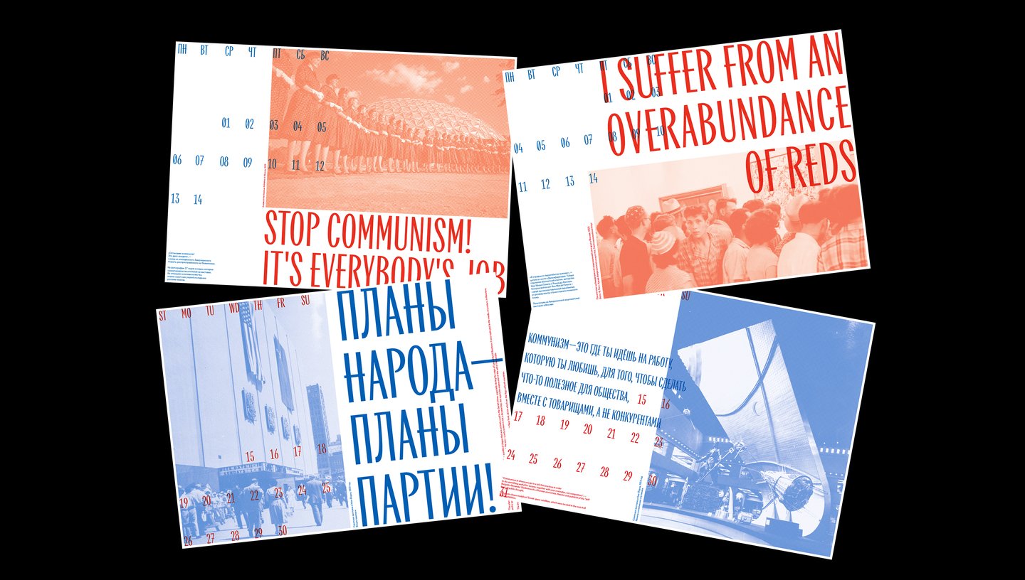 Посвящённый Американской выставке в Сокольниках и Советской выставке в Нью-Йорке 1959 года, календарь подчеркивает парадоксальную схожесть двух стран и демонстрирует скрытую пропаганду каждой из них.