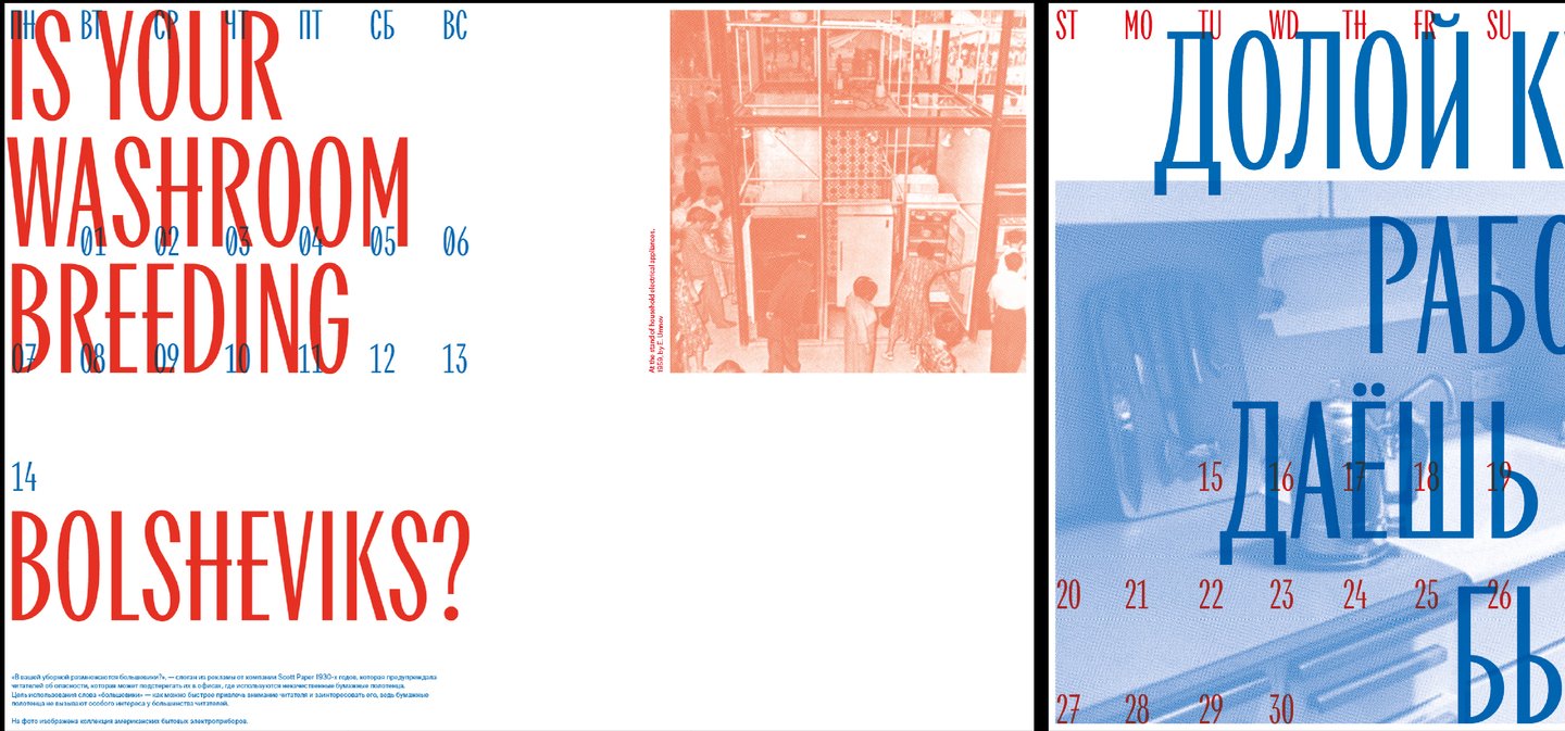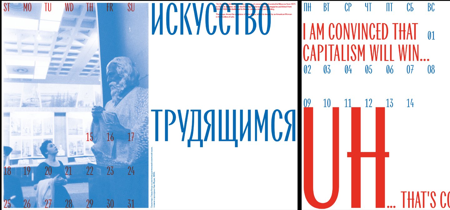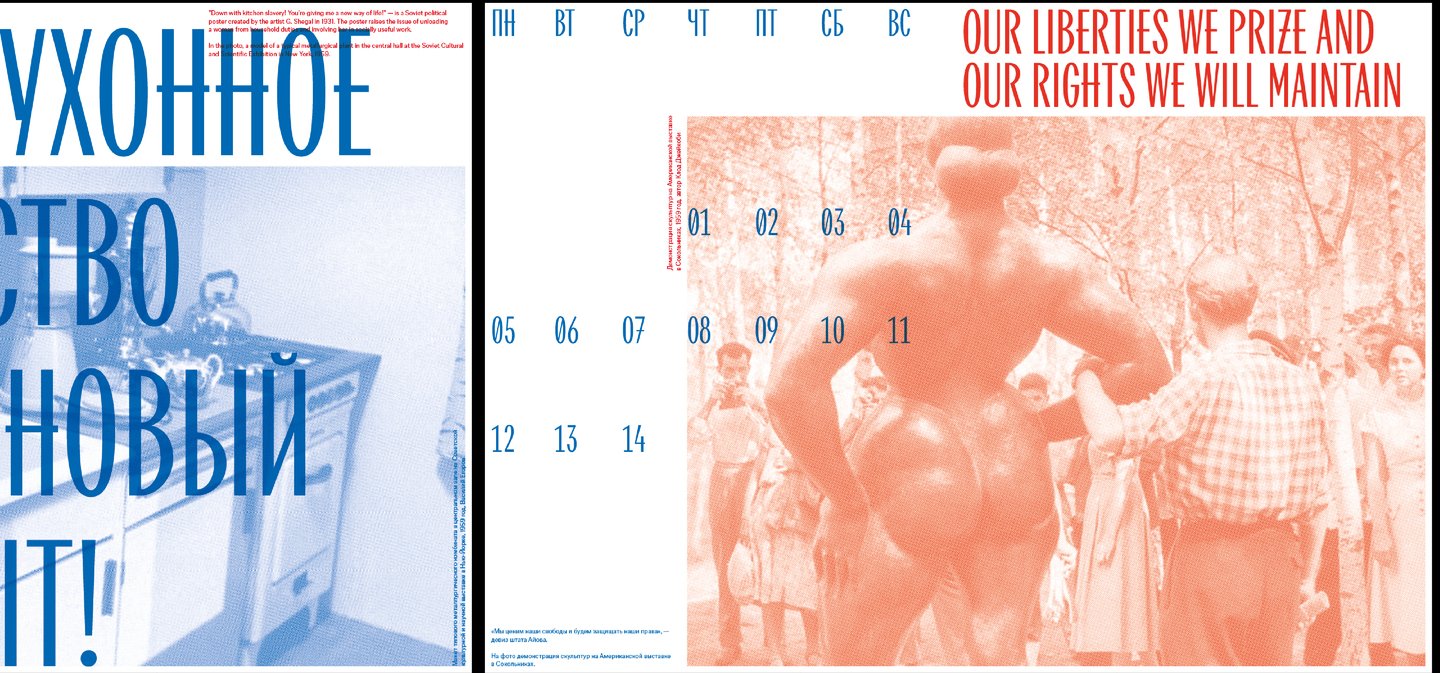 Посвящённый Американской выставке в Сокольниках и Советской выставке в Нью-Йорке 1959 года, календарь подчеркивает парадоксальную схожесть двух стран и демонстрирует скрытую пропаганду каждой из них.