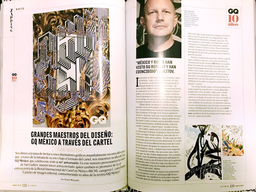 Плакат был сделан к 10-летию мексиканского журнала GQ в рамках международной пригласительной плакатной акции и был опубликован в июньском номере журнала вместе с интервью.