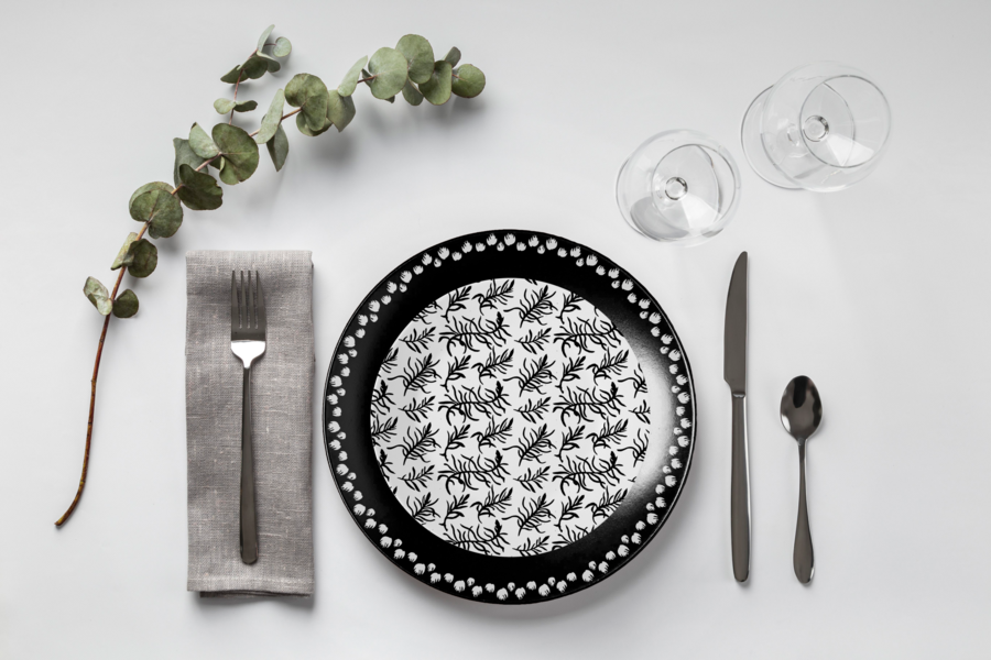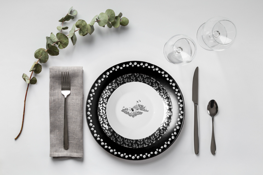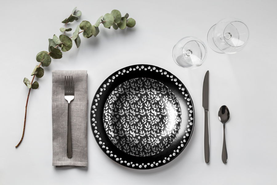 Сервировочная тарелка-подставка / Основная тарелка 1 / Основная тарелка 2 / Десертная тарелка
