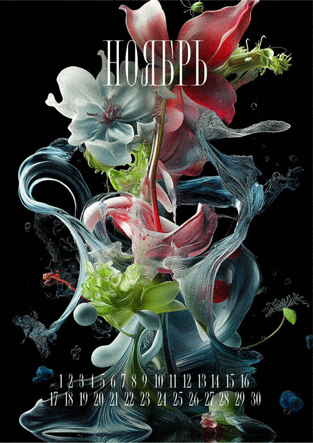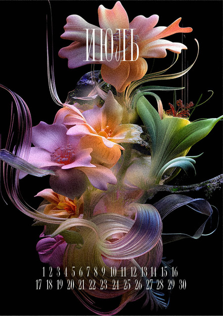 — это календарь генеративного виденья природы, преимущественно растений, которые рождаются при обработке ai абстрактно-специфических форм