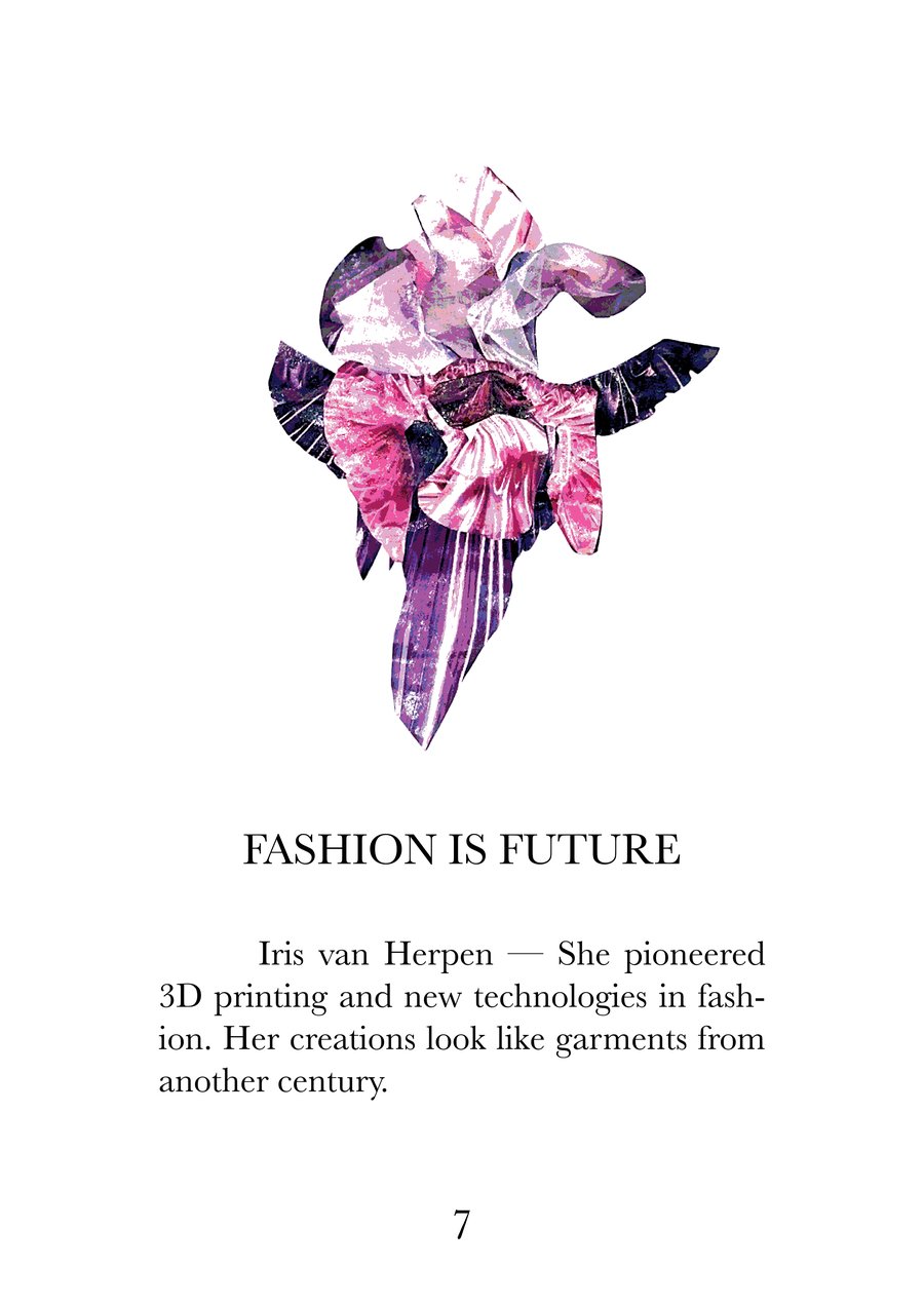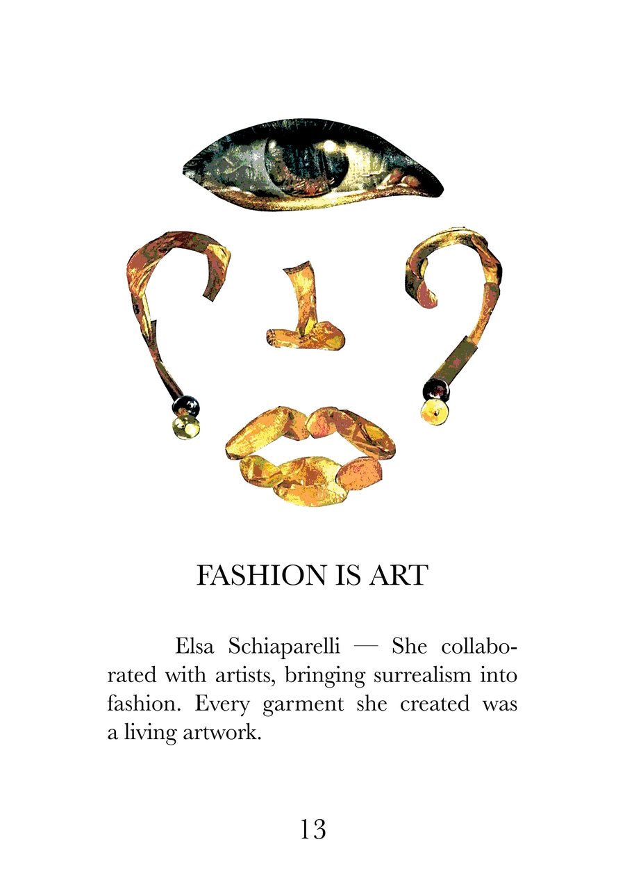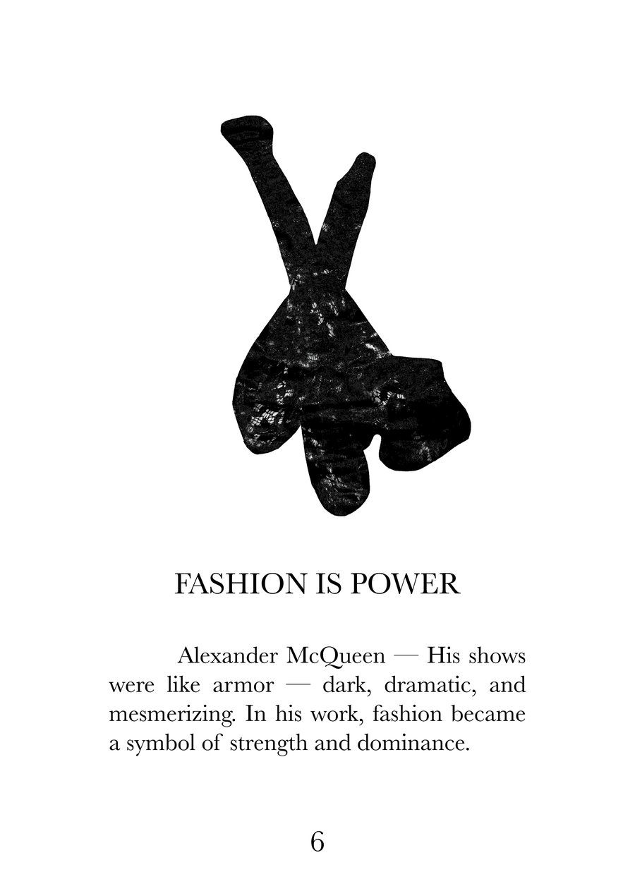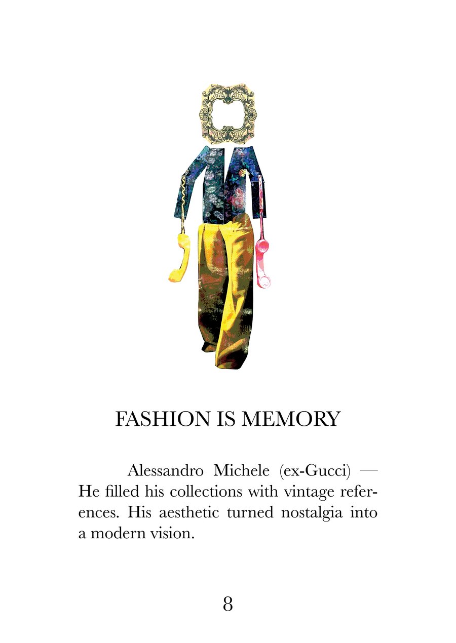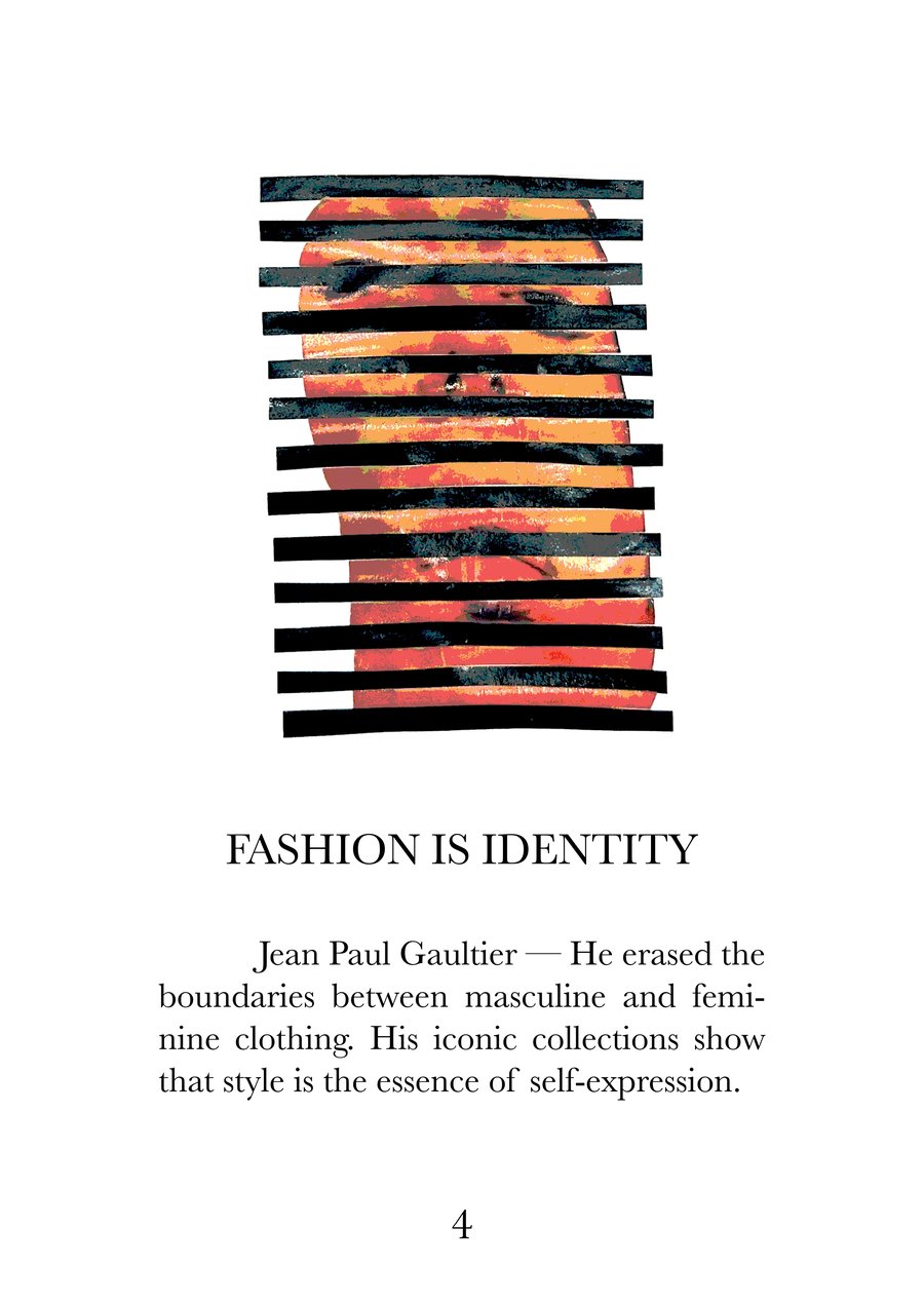 Эта книга — визуальный и текстовый манифест, собрание из 16 высказываний о моде, исследующих суть одежды как языка культуры, идентичности и эмоций. Каждая страница соединяет сильную фразу с именем дизайнера, воплощающего её смысл, создавая диалог между словами, историей и визуальной формой.